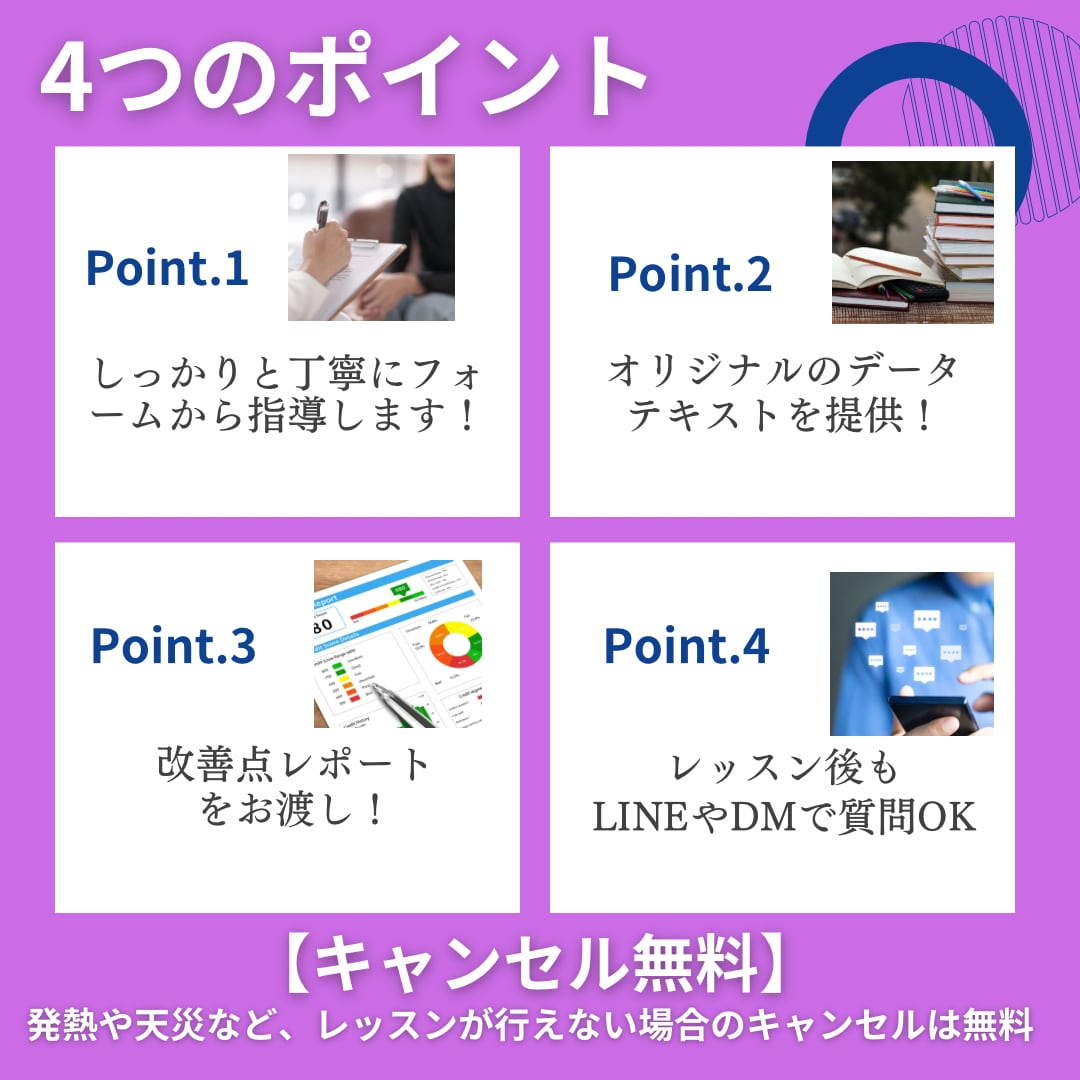 【怪我や病気、急なお仕事、天災などキャンセルも無料】