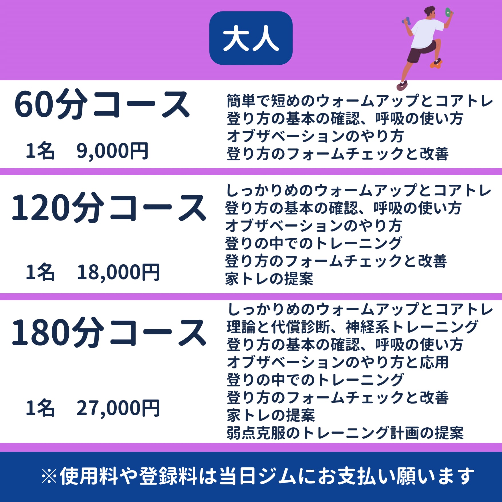 英語のレッスンをご希望の場合や違うジムをご希望の場合はインスタグラムのハイライトにあります、English Class の料金となります。